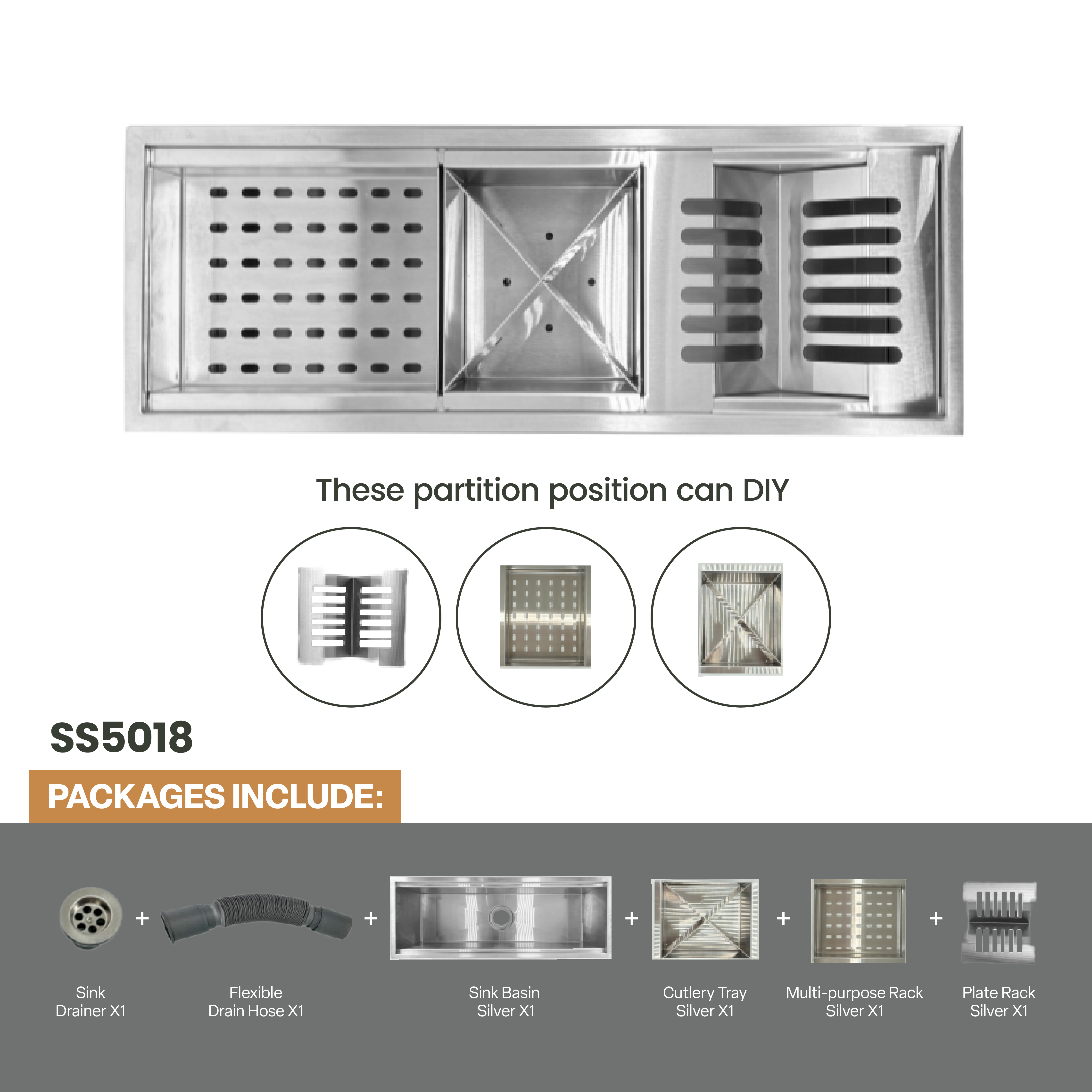 Lenght: 500mmWidth: 185mmDepth: 140mmThickness: 3mm/1.2mmMaterial: SUS 304Colour: Silver