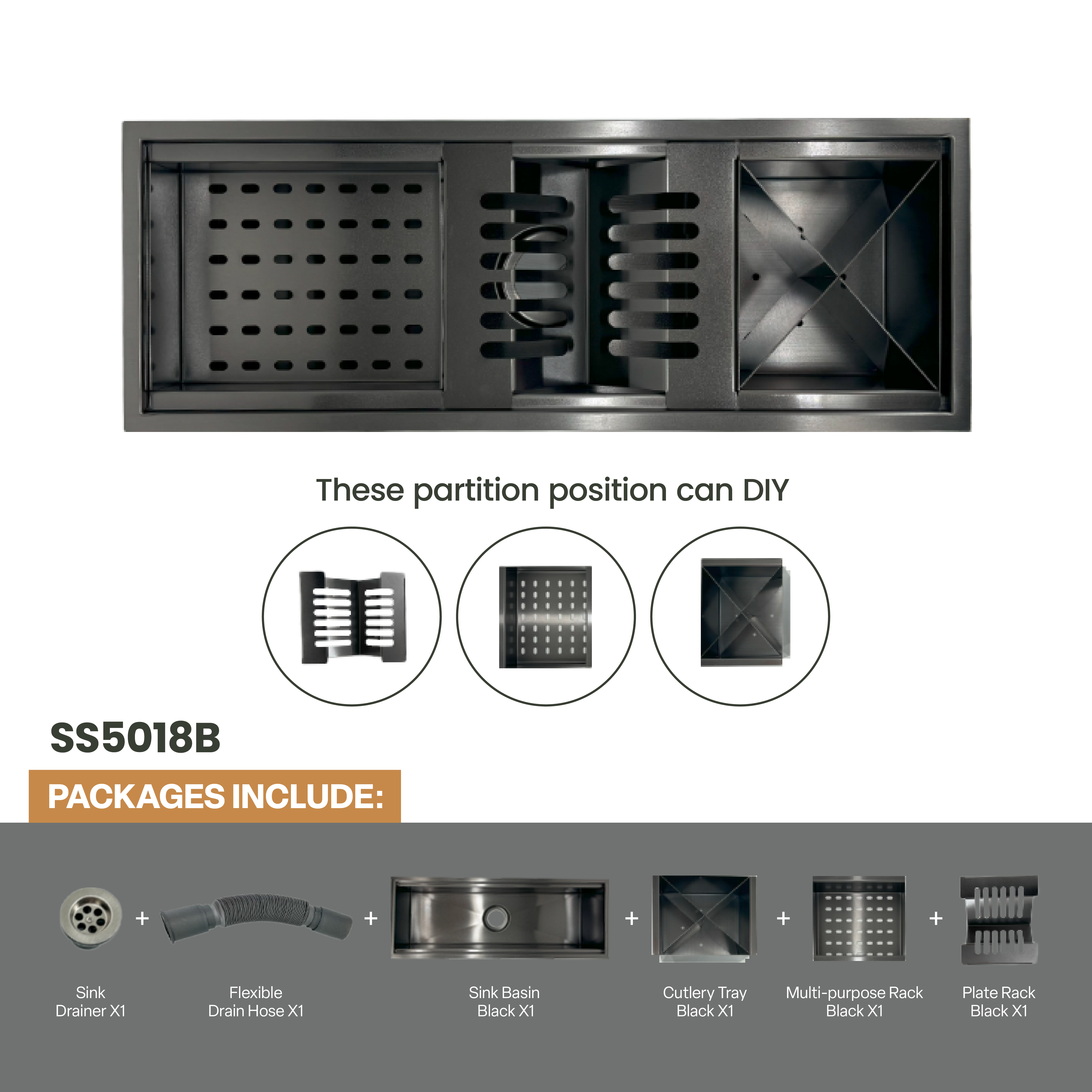 Lenght: 500mmWidth: 185mmDepth: 140mmThickness: 3mm/1.2mmMaterial: SUS 304Colour: Black
