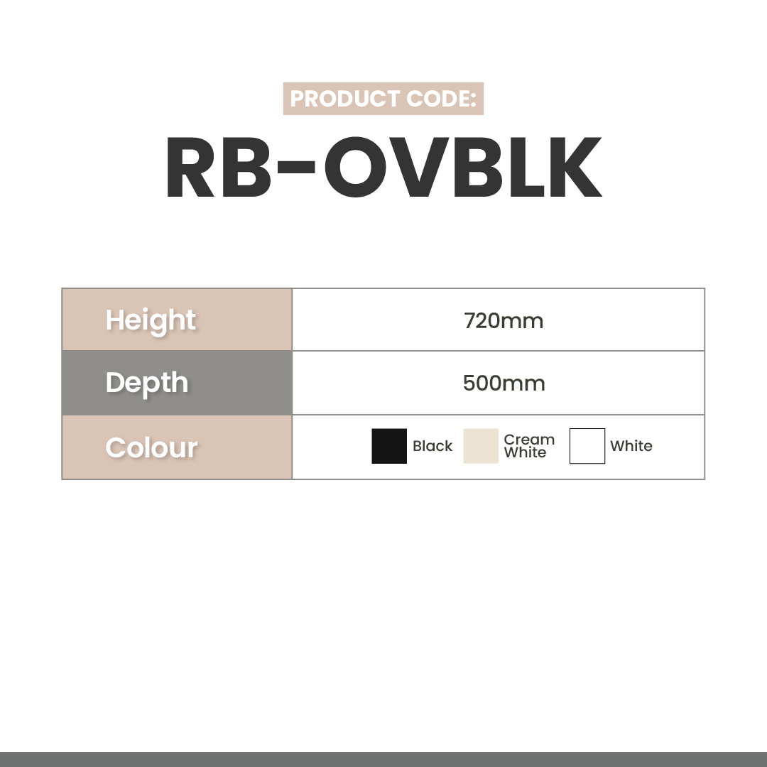 Depth: 500mm Height: 720mmMaterial: 2.0 Aluminium Colour: BlackCan be paired with 1400mm-1800mm stone top