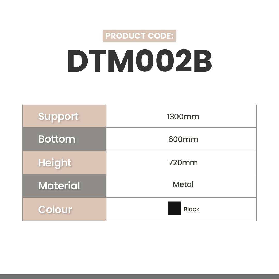 Support: 1300mm Bottom: 600mm Height: 720mm Material: MetalColour: Black