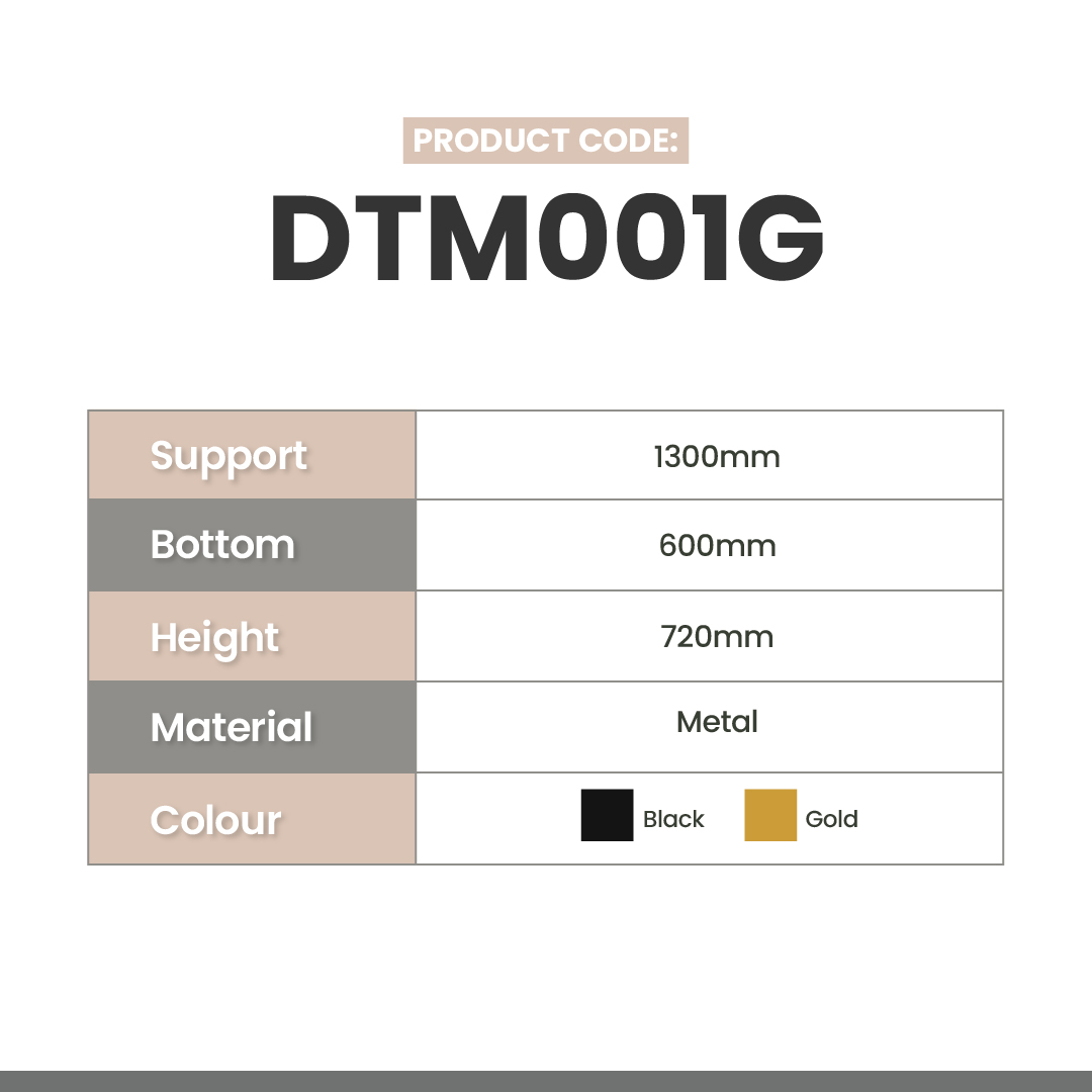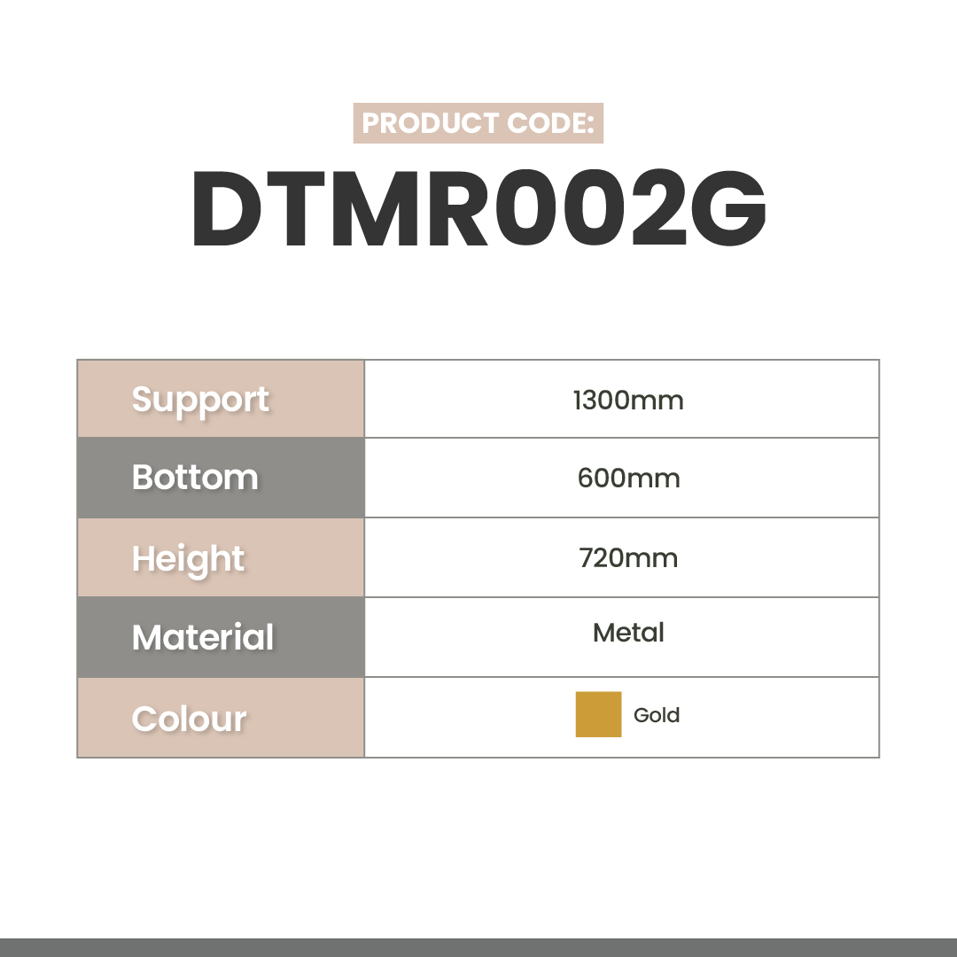 Support: 1300mm Bottom:x 600mm Height: 720mmMaterial: MetalColour: Gold